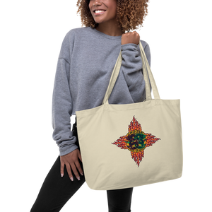 Tote Bag - Large Organic Cotton Choose Red or Green Flaming Dragon Shield