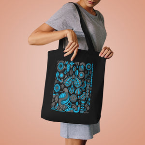 Tote Bag - 100% Cotton Canvas with Nordic Birds and Florals Design